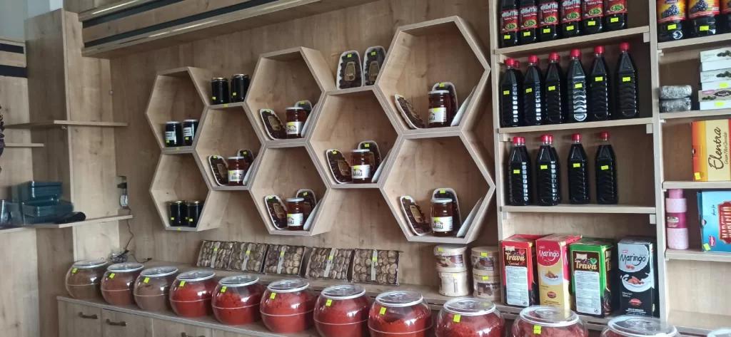 Gelincik Baharat Dükkanı’nda, taze baharatlar, baharat karışımları, kuruyemişler, otlar ve çaylar gibi geniş bir ürün yelpazesi yer alıyor.