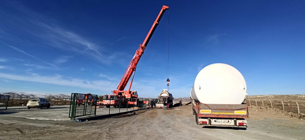 Bugün itibari ile 25’er tonluk iki adet doğalgaz deposu doğalgaz depo alanına getirilerek vinçlerle indirilmeye başlandı.