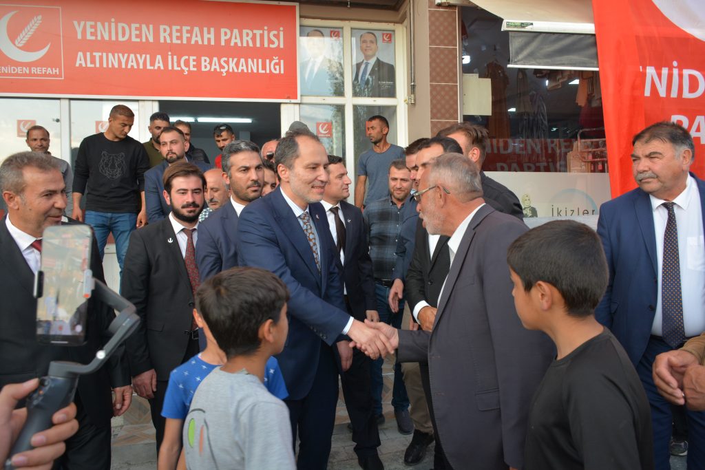 Yeniden Refah Partisi Genel Başkanı Fatih Erbakan Altınyayla İlçe Teşkilat binasının açılışını yaptıktan sonra parti binasında vatandaşlarla sohbet etti.Erbakan İlçe Başkanı Yüksel TAŞDELEN’e hayırlı olsun temennilerinde bulundu. Vatandaşlarla hatıra fotoğrafı çektirdikten sonra Gemerek İlçesine Hareket etti.