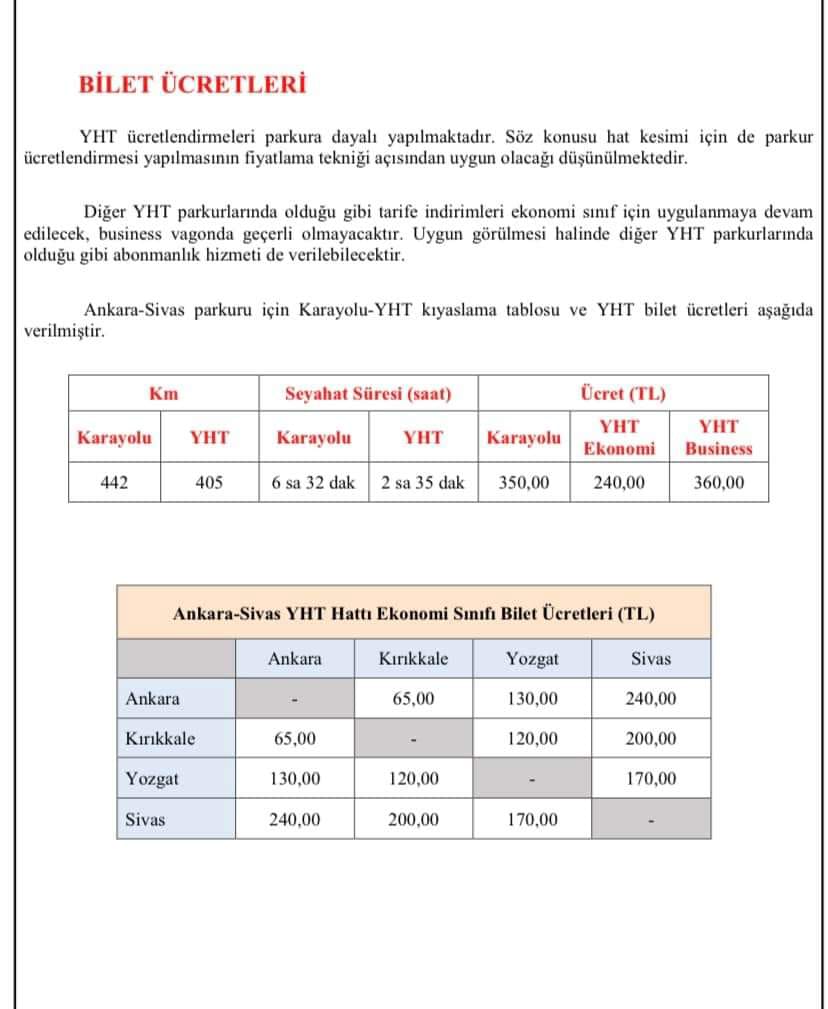 İŞTE HIZLI TREN BİLET ÜCRETLERİ